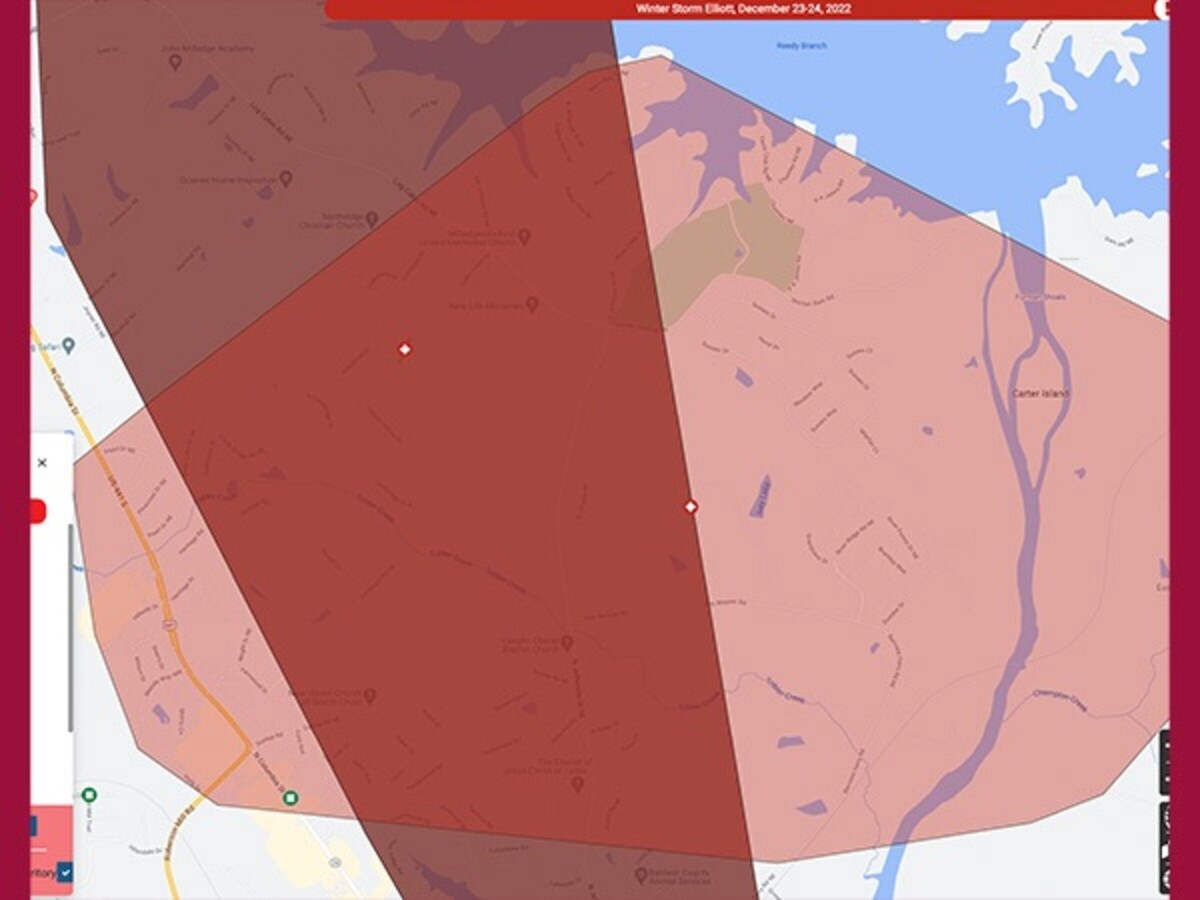 Pretty much everything north of Martin Luther King Jr. Drive, south of Corral Road, east of North Columbia Street and west of the Oconee River was "red" on Georgia Power's outage map.