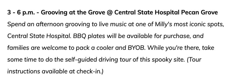 It was called "Grooving at the Grove," a meet-and-greet/concert at the Central State Hospital pecan grove for Georgia College parents.