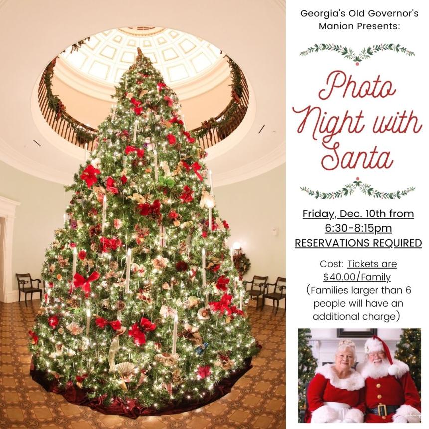 "From 6:30-8:15pm on Friday, December 10th, come get your picture taken with Santa in front of the Mansion Christmas tree. Tickets are $40.00/family, and include 5 minutes with Santa and Mrs. Claus, a photo taken with Santa, a walking tour of the Main Level of the Mansion, and hot chocolate, cookies, and a 19th century ornament craft in our Education Building. Photos will be available for purchase after the event through Lifescapes Photography.