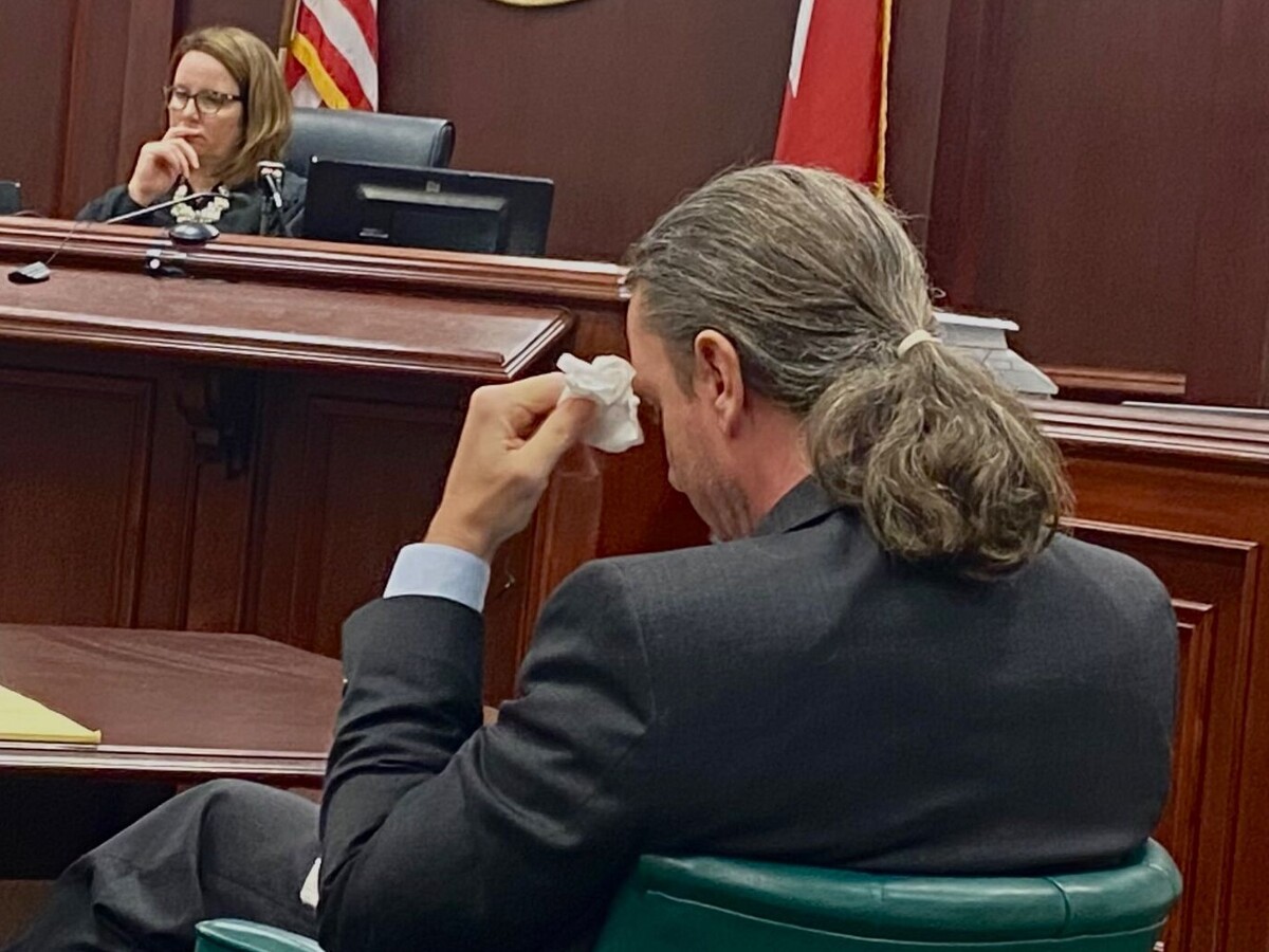 Pictured above is Marcus Lillard becoming emotional while hearing the audio of a jailhouse phone conversation he had with his father back in 2019.